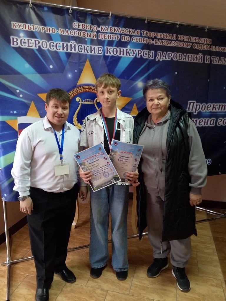 на фото Генеральный директор СКТО "Культурно-массовый ценгтр по СКФО" Владимир Сусанин и Проценко Владислав Ставропольский край ст. Зольская