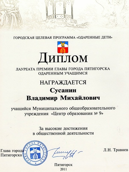 - Лауреат премии главы г. Пятигорска за высокие достижения в общественной деятельности