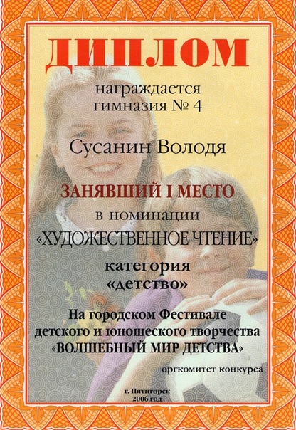 - Диплом 1 степени во Всероссийском тестировании "Быть воспитателем это призвание"